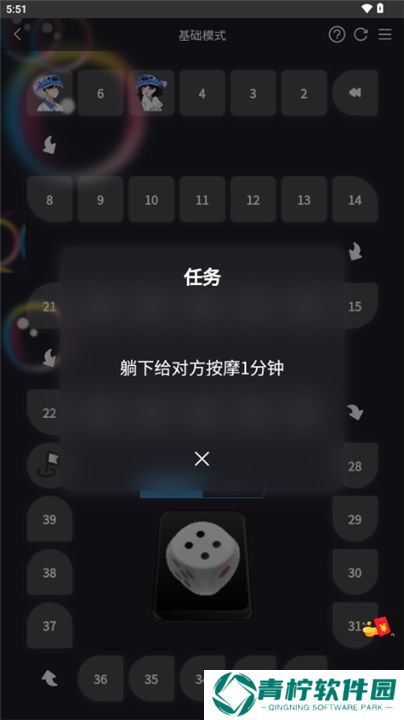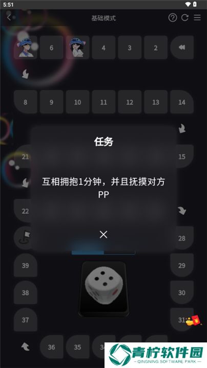 掷骰子前进,每个格子都有特别任务!落在哪里就要执行相应挑战,比如拥抱、亲吻、对视10秒等,让每一步都充满惊喜和乐趣。