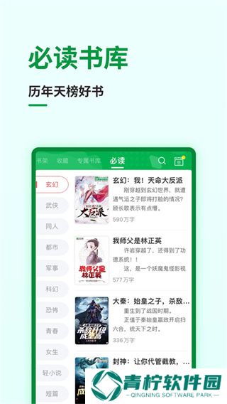 【内容齐全】:玄幻、都市、言情、武侠、科幻、军事、职场励志,应有尽有
