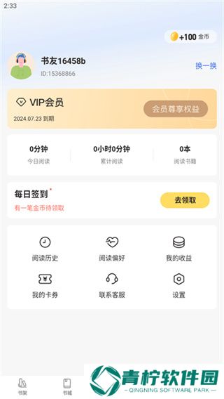 5、点击我的选项可以查看自己的信息,统计每天的阅读时长以及累计阅读时长。