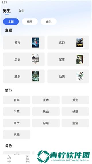 2、流畅舒适的仿真翻页效果,书架有两种分类和管理模式:白天/晚上。