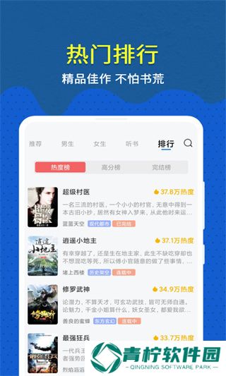 5、热门排名,紧跟潮流,广大书友会追求触手可及的热门书籍,不用担心书荒。