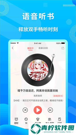 飞卢听书app是一款专为小说读者设计打造的手机小说免费听书平台,飞卢听书最新手机版软件拥有全网最全的正版原创小说书源,海量的小说资源库,包含了十分丰富的小说题材,众多你喜欢的小说这里应有尽有。此外,飞卢听书app内为用户提供的小说作品,都可以完全免费畅听,真正解放你的双眼。