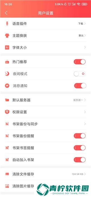 4、护眼模式:蓝光过滤、听书功能、秒速追更、夜间模式。