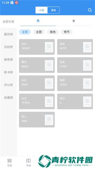 6、来到“分类”界面中,这里对海量的小说进行了分类管理,并提供了排行榜。
