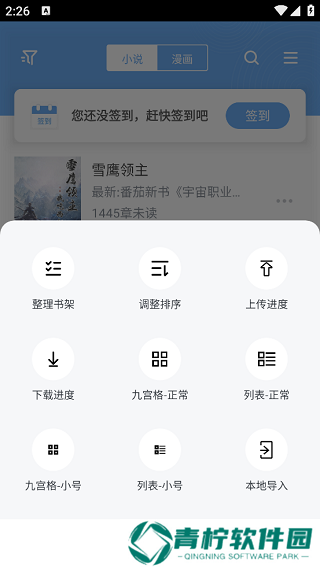 4、点击页面右上角的三条横线图标,可以对书架进行整理设置;
