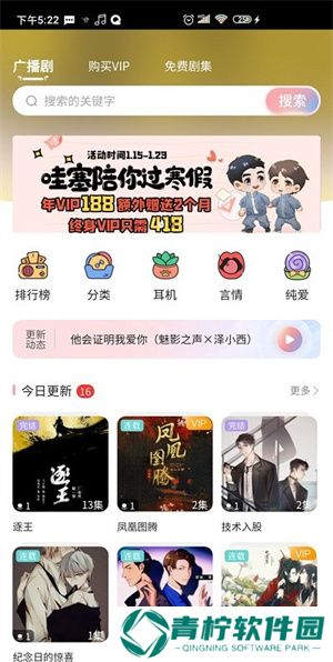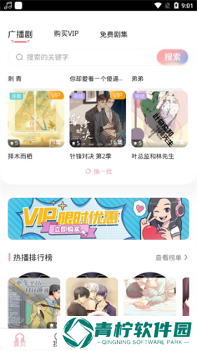 1、首先大家进入软件,在首页有大量热门的广播剧可以收听,大家可以根据自己喜欢的进行选择。