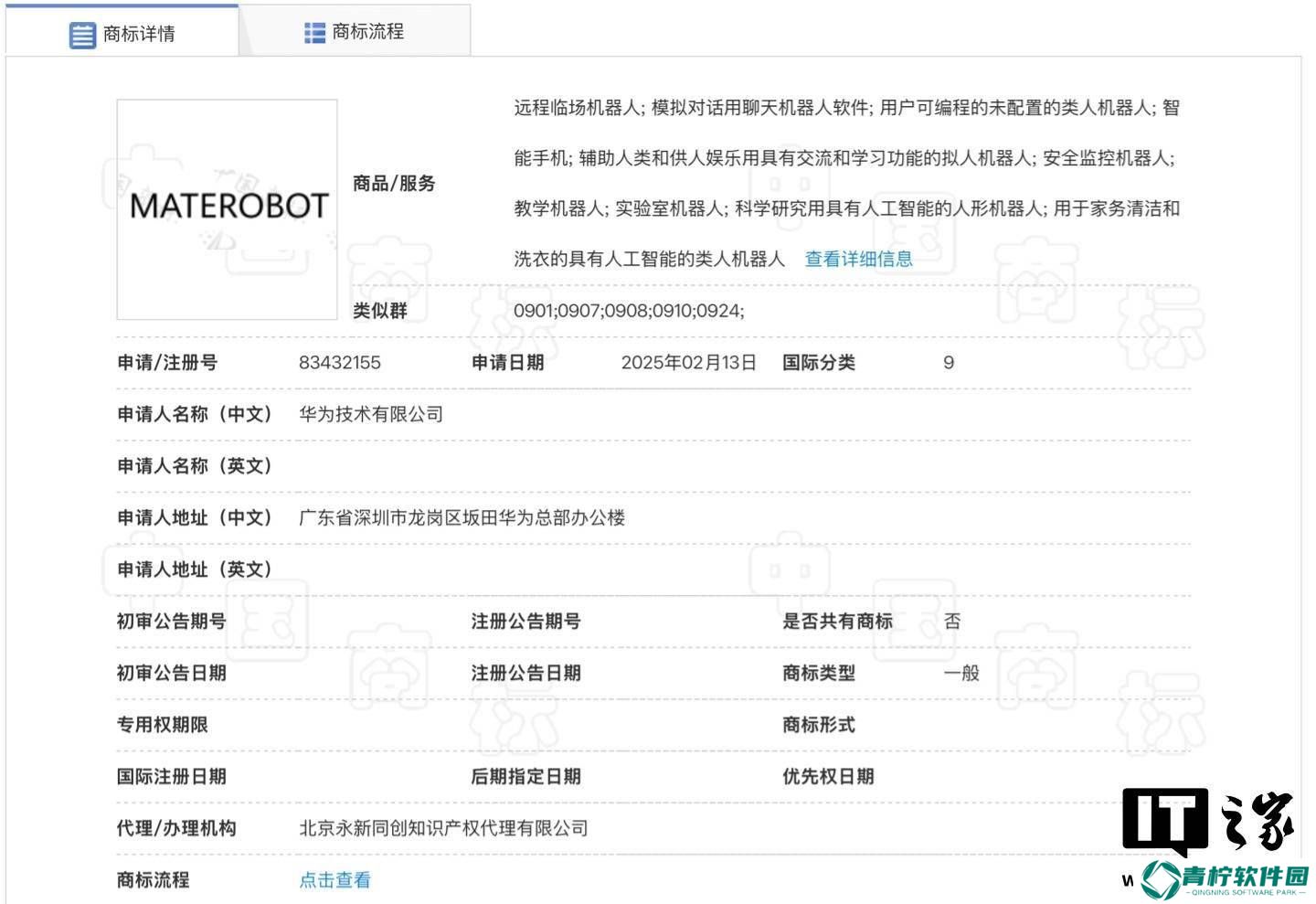 近期,华为技术有限公司的一项新商标注册引起了广泛关注。据国家知识产权局商标局(中国商标网)公开信息显示,华为于2月13日提交了“MATEROBOT”商标的注册申请,对应的注册号为83432155,其国际分类被归为科学仪器类别。
